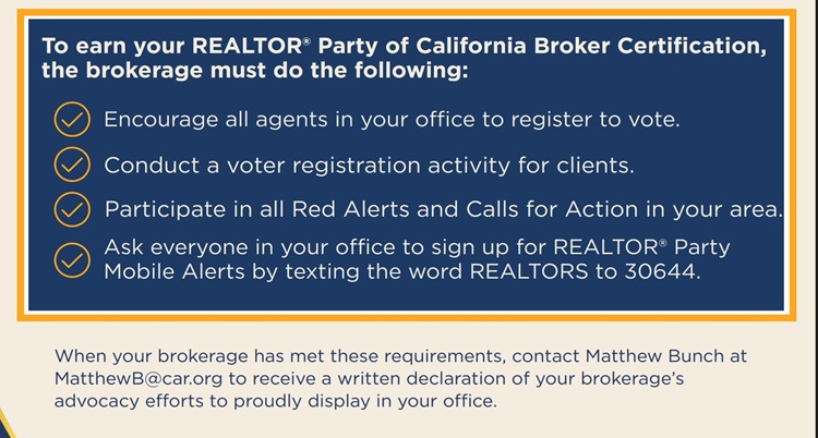 C.A.R.'s success in the legislative and political arenas depends largely on the participation of individual members. You can make a difference in many ways. We need you to step up and take action.
